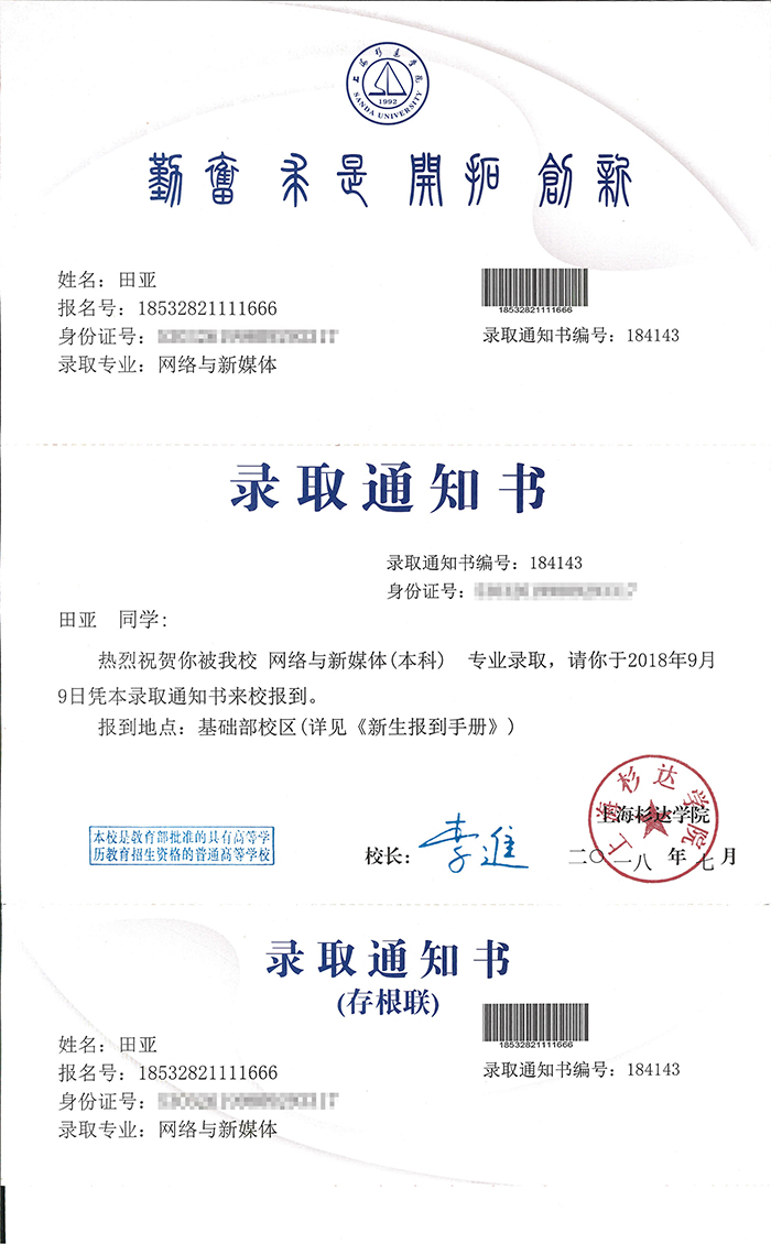 ——記好孩子學校優秀畢業生田亞被上海杉達學院錄取