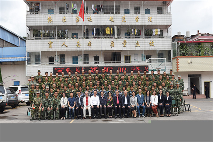 鮑主任 一行首先參觀了學校的教學樓、宿舍樓、食堂等硬件設施,并在多媒體教室觀看了學校教學活動短片。隨后,鮑主任一行還和孩子們進行交流。其間,就學校的辦學歷程、辦學理念、辦學特色及學生的改變方式等向調研組作了詳細匯報。
