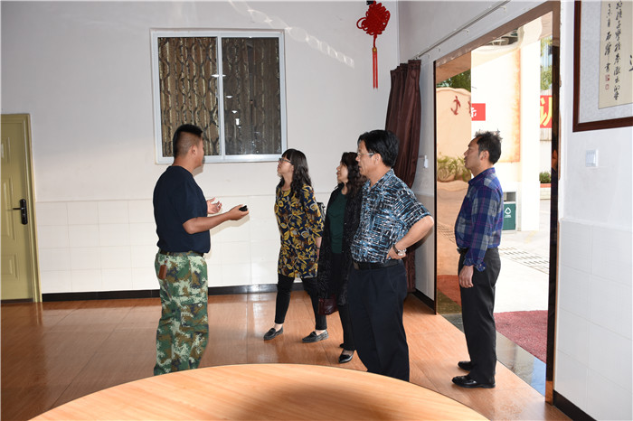在學校副校長兼總教官毛積敏的陪同下,高校長一行參觀了學校的辦公樓、食堂、曬衣房、學生小教室、心理輔導室、學生宿舍等硬件設施,并在多媒體教室觀看了學校教學活動短片。其間,毛副校長就學校的辦學歷程、辦學特色、管理模式等向高校長一行作了簡要匯報。