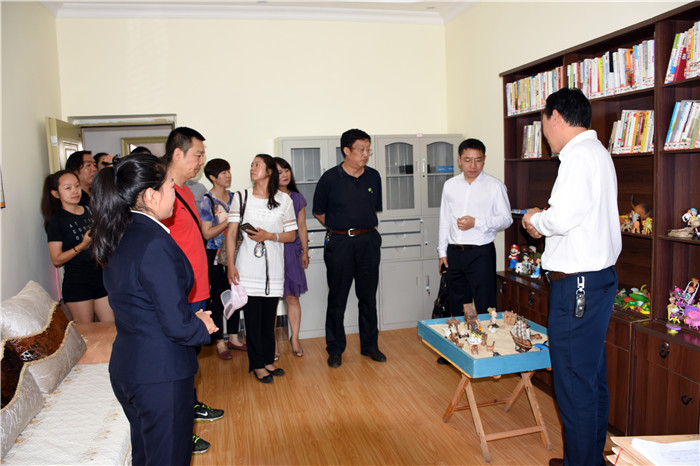 考察組一行首先參觀了學校辦公樓、食堂餐廳、學生宿舍、心理輔導室等硬件設施。隨后,在多媒體教室觀看了教學活動短片,并和我校的孩子們合影留念。其間,就學校的辦學理念、發展歷程、管理模式、辦學特色、辦學戰略定位、辦學效益等多項內容逐一做了詳細介紹。