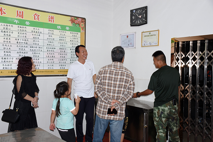 在學校校長、副校長毛積敏、總務主任李月、心理輔導老師趙艷等校領導的陪同下,王總一行參觀了學校的辦公樓、食堂、曬衣房、學生小教室、心理輔導室、學生宿舍等硬件設施,并在多媒體教室觀看了學校教學活動短片。其間,魯校長就學校的辦學歷程、辦學特色、管理模式、辦學效益等向王總一行作了詳細介紹。