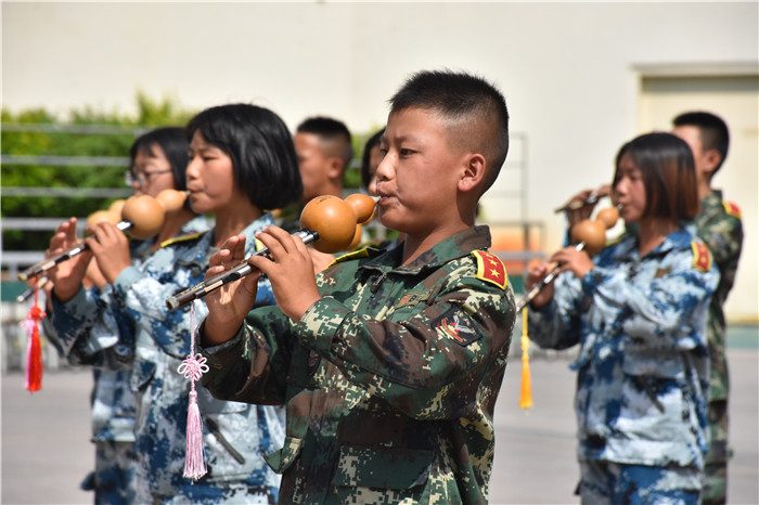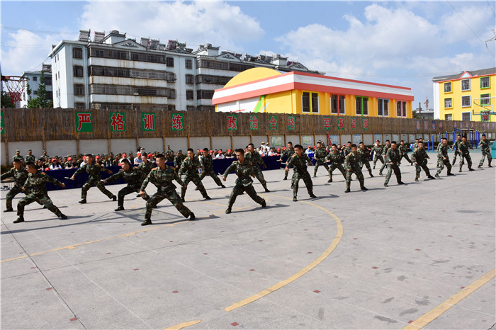 在教官的帶領下,我校男女生隊列、軍體拳、匕首操、葫蘆絲合奏《荷塘月色》、《女兵操》、手語《我相信》等方隊相繼出場。隊列方隊的同學們精神飽滿、口號響亮、步伐鏗鏘、隊形整齊,展現了良好的精神風貌;軍體拳方隊的表演也深深吸引了大家的眼球,出拳帶風,出腿起塵,踢腳勾拳,嫻熟連貫,帥氣瀟灑,被同學們演繹得淋漓盡致;匕首操方隊的同學們也毫不遜色,一招一式,一起一落,剛勁有力,展現了頑強拼搏和勇做時代弄潮兒的決心;葫蘆絲合奏的《荷塘月色》,清幽典雅,跟著旋律有如身臨其境,仿佛有種荷塘晚風吹拂的清涼,一幅夏日荷塘月色的動人畫卷頓時呈現在大家眼前,也傳遞出孩子們對淡雅事物的美好追求;《女兵操》表演剛柔并濟,歡快向上,展示出孩子們的健康與活力。