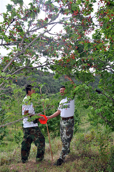 2016年5月4日上午,我校副校長兼總教官毛積敏帶領(lǐng)部分師生到安寧青龍界牌村櫻桃園為學(xué)生采摘櫻桃。