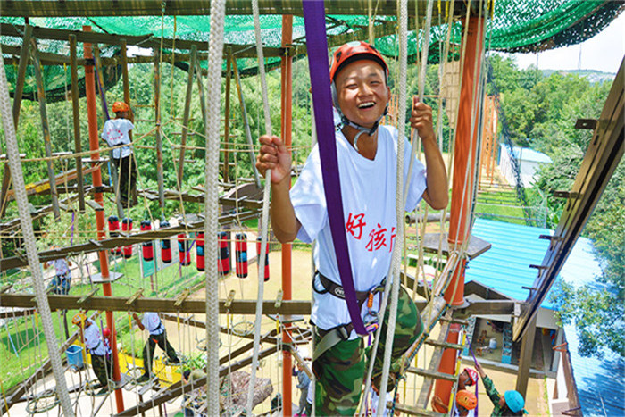 在愉快而又緊張的氛圍中,同學(xué)們努力地完成著每一個項目。雖然在挑戰(zhàn)過程中,有的孩子有過膽怯、有過害怕,但在教練的幫助和隊友們響亮的加油打氣聲中,他們沒有退縮、沒有放棄,憑借著頑強的毅力、堅定的信念,以及突破自我和團結(jié)協(xié)作的精神通過了重重難關(guān)考驗。