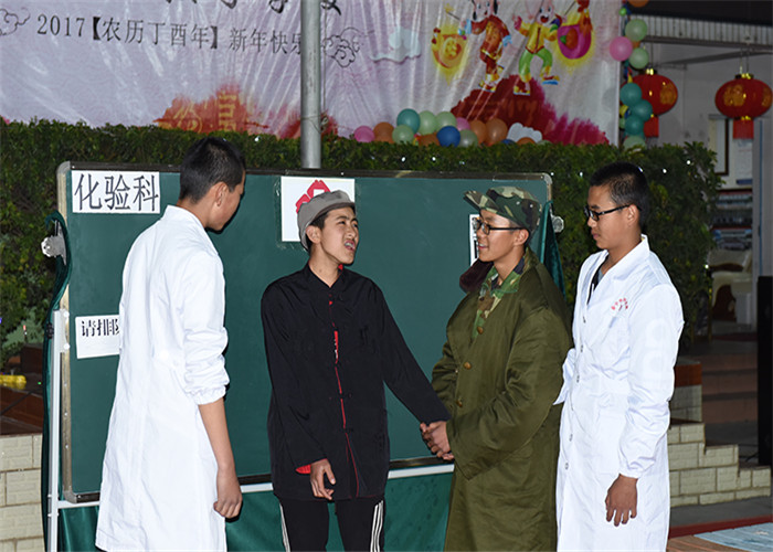 節目開始前,魯校長作了新年致辭,簡要回顧了16年的工作,并對新一年的工作提出了要求。接下來,一支《Ppap起來嗨》舞蹈拉開了晚會序幕,之后的節目內容豐富多彩,有舞蹈、小品、啞劇、相聲、鋼琴獨奏、葫蘆絲演奏、吉他彈唱等,同學們的表演精彩絕倫、惟妙惟肖,臺下的掌聲和歡呼聲經久不息,把現場的氣氛一次次推向了高潮,舞蹈《青春修煉手冊》更是把大家帶入了歡樂的海洋。