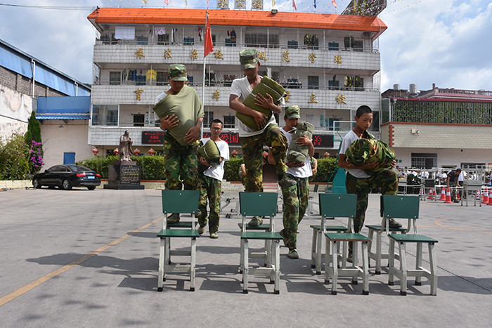 上午,孩子們把被子卷起抱于懷中,進行日常生活,如掃地、洗衣、撿菜、沿著操場上設置的障礙物行走等,模擬母親養育自己的艱辛。緊緊只是兩小時的時間,孩子們就累得叫苦連連,也是此時此刻孩子們才明白,母親是何等的不易,對母親的思念也顯得愈加強烈!