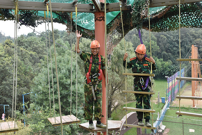 在輕松愉快的熱身活動(dòng)后,孩子們熱情高漲、氣氛熱烈,積極參與挑戰(zhàn)了天使之手、凌空飛躍、探險(xiǎn)樂園等30余個(gè)項(xiàng)目。在完成挑戰(zhàn)的過程中,孩子們團(tuán)結(jié)互助,相互激勵(lì)、鼓勁,發(fā)揚(yáng)了不怕苦、不怕累的精神,以不斷挑戰(zhàn)自我的勇氣,克服了心理恐懼、突破了心理障礙,用心感悟了“合作的必須”、“信任的可貴”、“堅(jiān)持的重要”等。那些平時(shí)理解起來比較深?yuàn)W的道理在體驗(yàn)中得到“頓悟”,那些一直困擾的情緒在游戲中愉快“化解”,孩子們?cè)诨顒?dòng)中都成了理論者、實(shí)踐者、反思者。值得驕傲的是,全體隊(duì)員,不論男女,無一掉隊(duì),全部完成了預(yù)期的挑戰(zhàn)項(xiàng)目,領(lǐng)略了“一覽眾山小” 的壯麗景象。