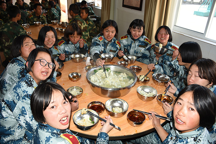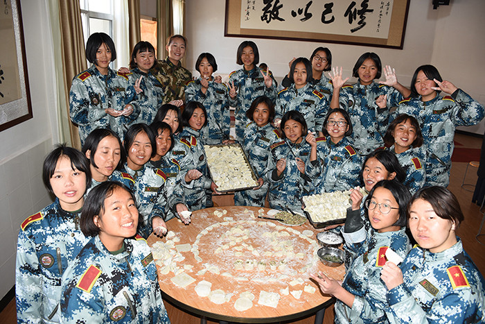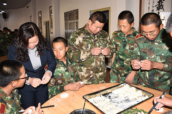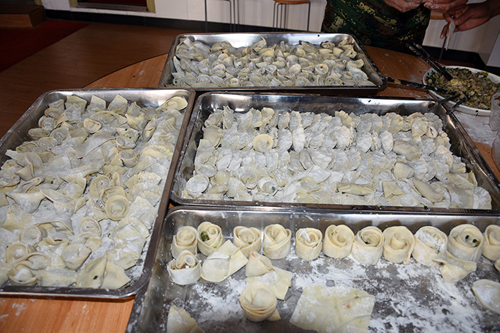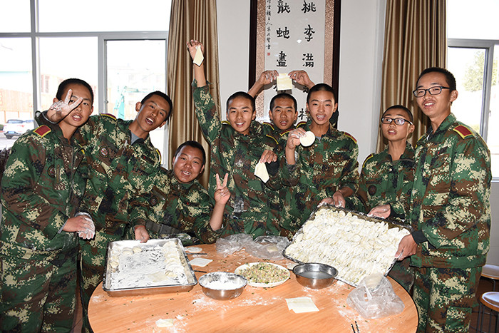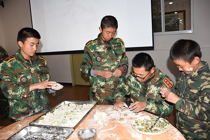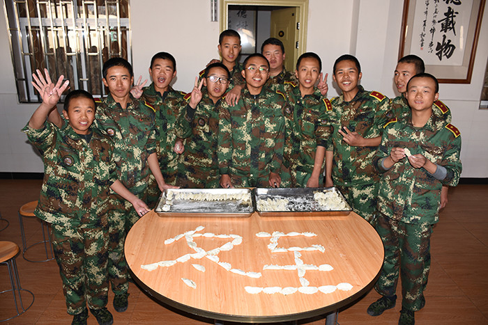一大早,孩子們便欣喜若狂地來到食堂,迫不及待地想要大顯身手。副總教官王濤給孩子們講解了冬至的來歷和習俗后,各班主任和孩子們就一起開心地包起了餃子。你看,有的包、有的捏、有的說、有的笑、有的商討、有的相互切磋技巧......老師們一會兒做“督導員”,一會兒捋起袖子加入到包餃子的強大陣營當中,師生同樂的暖意沁人心脾。孩子們包出來的餃子花樣繁多、千姿百態,有敦實厚重的,有別致精巧的,還有四不像的?粗槐P盤別出心裁但都裹滿愛意的餃子,看著一張張掛滿面粉但都笑容燦爛的面容,吃著香溢滿口的餃子,別樣的冬至喜慶連連。