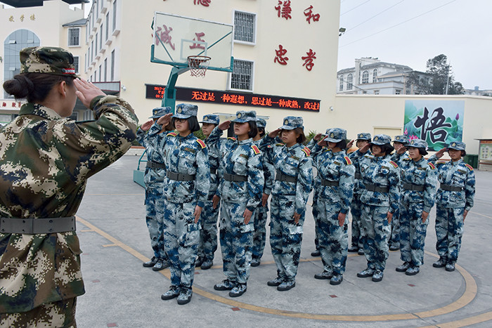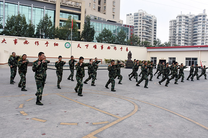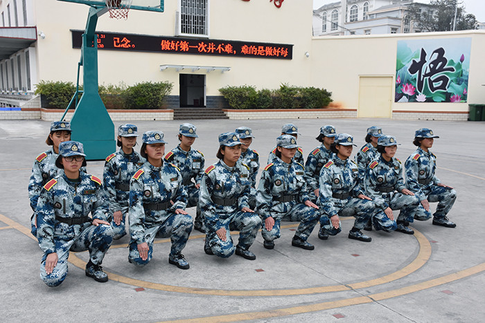 在基本的隊列表演完畢后, 伴著激揚的旋律,女生方隊進行了《父親》手語操和女兵操表演。看!她們一個個精神抖擻,柔中帶剛,舉手投足釋放著青春的活力,贏得了師生陣陣熱烈的掌聲。伴隨著震耳欲聾的吶喊聲,男生方隊出場了!他們個個生龍活虎,一招一式,剛勁有力,為我們完整地展示了第二三套擒敵拳、基本手形步形、馬步沖拳。壓軸出場的教官摔擒表演、應急棍術更是淋漓盡致地展現了當代軍人的風采。