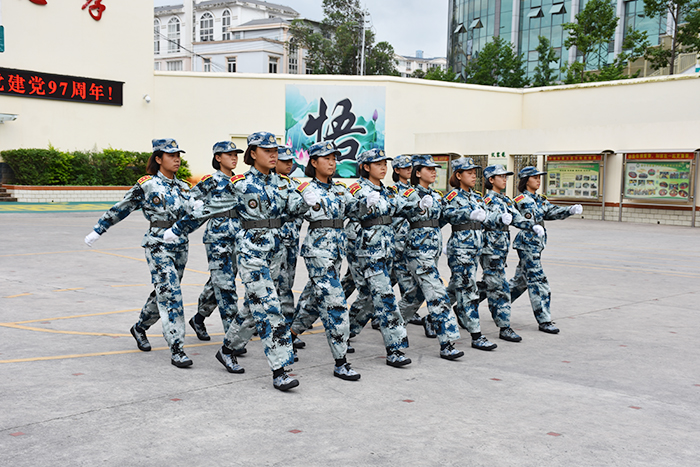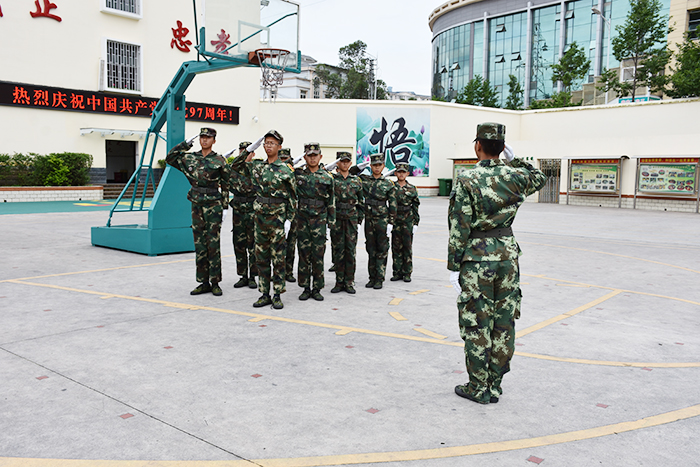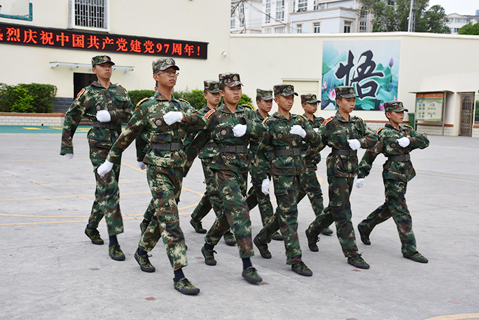 2018年7月1日,在中國(guó)共產(chǎn)黨成立97年之際,全校師生以軍訓(xùn)匯報(bào)表演的形式向黨獻(xiàn)禮。