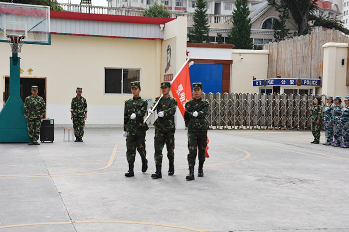 上午九時(shí),在莊嚴(yán)的升國(guó)旗儀式后,軍訓(xùn)匯報(bào)表演正式拉開(kāi)帷幕。全體學(xué)生整裝待發(fā),接受檢閱。跟隨著指揮員的口令,同學(xué)們用整齊的步伐、嘹亮的口號(hào)、颯爽的英姿,向大家展示了日常訓(xùn)練的驕人成績(jī)。