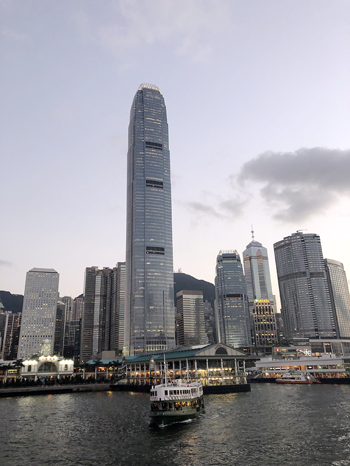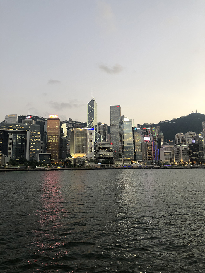孩子們夜游香港時,不禁為各種高樓大廈呈現出的霓虹燈夜景所驚嘆。另外,要談到交通,雖然有700萬人口,但不是太堵車,公共交通設施發達,有鐵路、電車、巴士、小巴、的士、渡輪等。香港有90%的市民都使用公共交通工具,比率為全世界最高。
