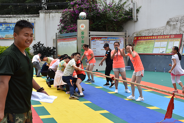 通過“兩人三足”接力賽、滾鐵環、“呼啦圈過山車”、單人跳繩、雙人跳繩、集體跳大繩、拔河等豐富多彩的比賽項目,掀起了全體人員的運動熱潮。
