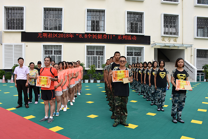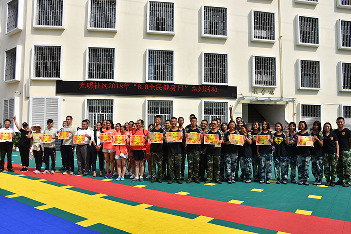 接下來的“呼啦圈過山車”、單人跳繩、雙人跳繩、集體跳大繩、拔河等項目,大家本著“友誼第一、比賽第二”的理念各自全力以赴、展現自我。整場比賽進行有序,在陣陣吶喊助威聲中,經過力量的碰撞與耐力的較量,各隊以飽滿的熱情展示了自己的風采,也充分展示了體育健身的魅力。最后,光明社區領導為此次比賽活動中各項目的獲獎小組進行了頒獎,并合影留念。活動取得圓滿結束!