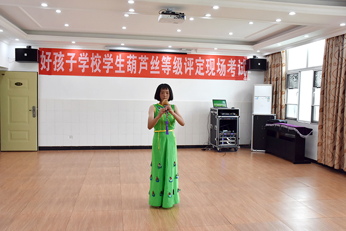 考級過程中,幾位主考官神情專注,認真聆聽考生的吹奏。溫老師首先贊揚了考生們的進取精神,肯定了授課老師馬文駿樂于奉獻、辛勤工作取得的成績。隨后切中要害一一點評,針對存在問題指出要領,對樂曲中的重難點部分著重指出。接著,溫老師循循善誘、深入淺出為考生們詳細講授怎樣吹好葫蘆絲,強調練好基本功的重要性。所有考生受益匪淺。同時,溫老師還向我們反映,有的考生天資不錯;有的考生是下了許多功夫,有扎實的基礎,演奏水平較高;有的考生具備了往專業方面發展的潛力。并夸贊我們葫蘆絲日常教學卓有成效。