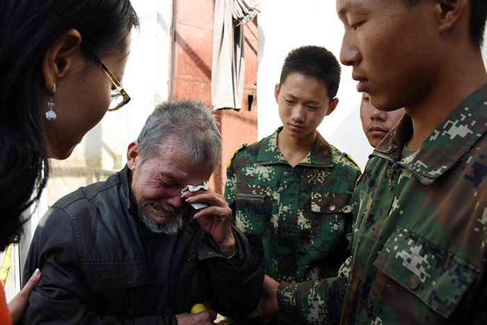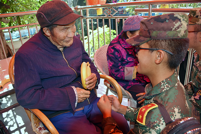 21位老人中,年齡從60歲到100歲之間不等,當我們敲開了一戶戶老人的家門,送上生活用品,和他們噓寒問暖,為他們捶背揉肩時,小小的舉動卻像大大的太陽溫暖著老人們的心。但在一次次的近距離接觸中,每家每戶不同的境遇卻一次次撞擊著我們的心扉。有的因為兒女孝順而安享晚年;有的因為夫妻一生相守很短,卻要用余生懷念的憂傷落寞;有的因為體弱多病一個人在家的孤寂......跟著老人們的不同境遇,聆聽老人們講述的故事,我們的心里或艷陽高照,或大雨傾盆。但不論生活如何艱辛,老人們樂觀、堅韌的品格給我們留下的印象卻是最深刻的。