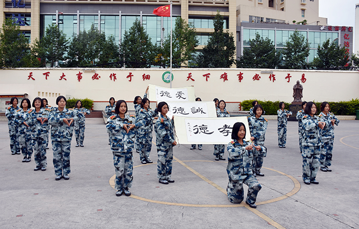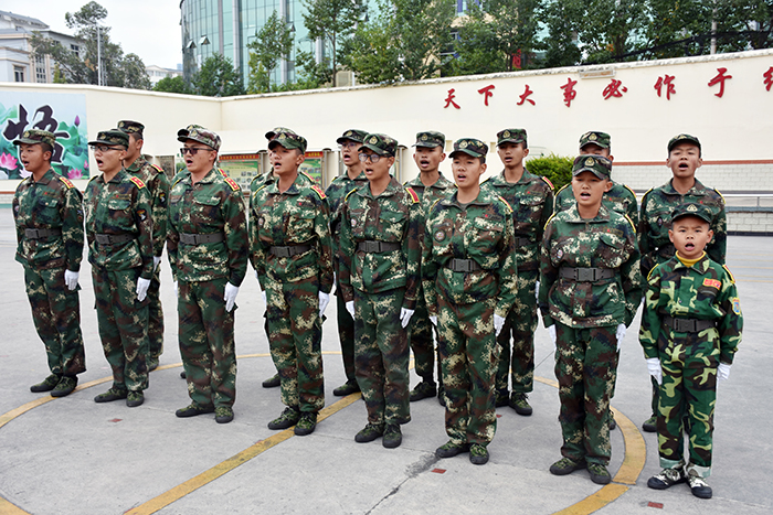 這是同學們一個月來頭頂烈日,櫛風沐雨,磨礪意志,挑戰極限,自我超越的檢驗,也充分展示出了軍訓的優良作風和豐碩成果,更突顯了學校的德育特色和校訓精神。那一片迷人的軍綠,成為了一道美麗的風景。