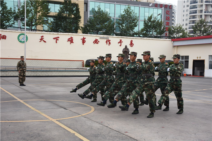 上午九時,在莊嚴的升國旗儀式后,軍訓匯報表演正式拉開帷幕。全體學生整裝待發,接受檢閱。同學們以各班級組成的隊列為單位,在教官的指揮下,喊著響亮的口號,邁著整齊的步伐,氣宇軒昂、英姿颯爽地表演了隊列一至八個內容(稍息跨立立正、停止間轉法、齊步跑步正步、齊跑步互換齊正步互換、齊跑步方向變換、蹲下與起立、脫帽與帶帽、敬禮與禮畢),向大家展示了日常訓練的驕人成績。