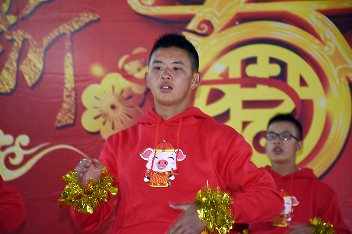 隨后,由學生王璐瑤、王佳曉和老師李月、王清恒主持的舞蹈、小品、朗誦、獨奏等14個精彩節目輪番登場。伴隨著一班、三班、十六班帶來的開場舞《恭喜發財》,晚會正式拉開帷幕,大家在熱情的旋律中開心地感受著濃郁的過年氛圍。