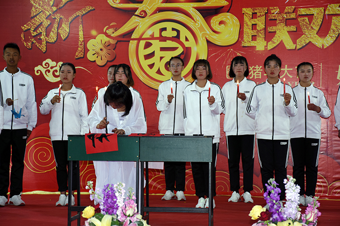 晚會歷時兩個半小時,在節目開始前,魯校長首先做了新年致辭,回顧了過去一年學校開拓進取、改革創新所做的標志性大事:組織老師到北京、山東、深圳、廣東、湖南、重慶等地開展交流研學,帶領同學走向國際大都市香港、澳門、三亞等地游學。學校踏上從校內改革走向校外改革、從省內改革走向國際改革、從內部活動走向外部活動的嶄新征程。同時,魯校長殷切希望同學們從行動上體現出來,在這里好好學習,熱愛學校、尊重老師、感恩父母、為自己的人生目標努力奮斗,超越之前的師哥師姐,贏在轉折點。最后,魯校長衷心祝愿全體師生以及家長新年快樂、萬事吉祥!