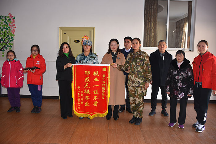為表達學校及全體老師對孩子的培育之情,路航的媽媽特地將一面繡有“授業(yè)一絲不茍 解惑無微不至”字樣的錦旗贈給學校,我校副校長兼心理輔導首席專家周榕樺、班主任字貴芬老師代表學校接下了這面意義深刻的錦旗。