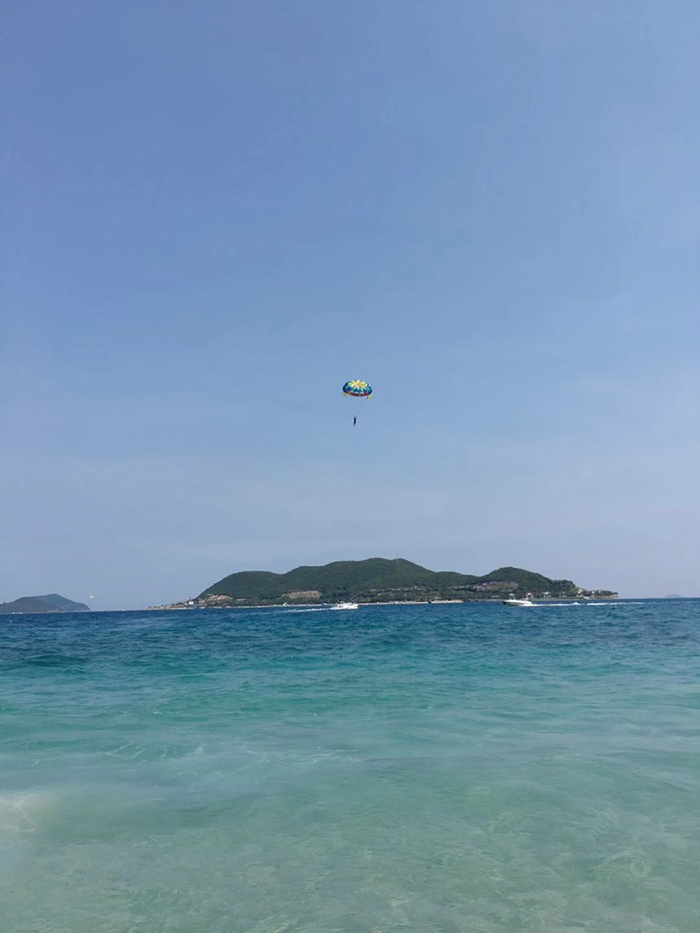 8日上午,孩子們興致勃勃地坐著木船出海到“竹島”游泳、曬太陽(yáng),并在船上享用美味的海鮮風(fēng)味餐,真是寧?kù)o時(shí)光的無盡享受。隨后又去“黑島”玩水上降落傘,陸續(xù)起飛的降落傘不斷從水上的高空飄過,紅黃相間的大傘鼓滿了風(fēng)帆,在碧海藍(lán)天之間劃出了靚麗的弧線。俯瞰深藍(lán)的芽莊大海,像是鳥兒一般在自由自在的飛行。