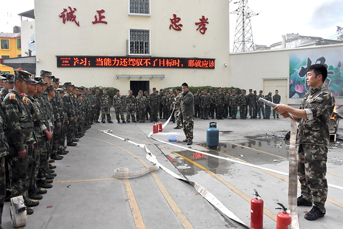 無論是避震演練,還是消防演練,老師們都按照要求到達指定位置,各司其職,指揮學生逃離。全校100余人均在1分10秒內完成了每次演練,并進行了清點人數工作,確保全員安全撤離。最后,在消防撲救演練階段,老師們還現場演示了滅火設備(滅火器、高壓水槍、滅火毯、濕毛巾)的使用方法,并指導全部學生親自操作演練。整個演練過程做到了快速、安全、有序,歷時共兩小時。演練結束,學校副校長毛積敏對演練進行了總結,并對學生進行了相關的避震、消防教育。