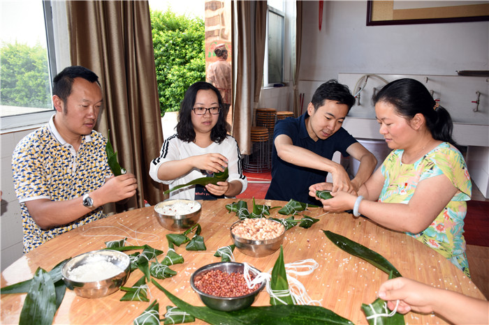 傍晚,一桌桌色香味美的飯菜全部就緒,一個個飄著濃濃葉香的粽子也呈現在餐桌上。孩子們興高采烈地圍坐在一起,吃著豐盛的晚餐、品嘗著獨特香味的粽子,不時向老師道祝福,和同學相共勉。在攝像機的鏡頭下,孩子們還爭先恐后地向遠方的爸媽送祝福,希望他們端午安康!值得一提的是,在端午當天,我校還迎來了畢業生楊鑫誠回校探望,和師生們也一起共慶端午、共話佳節。