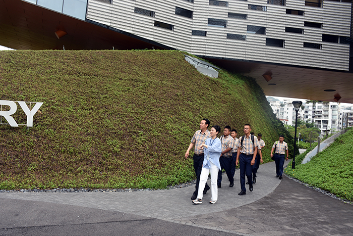 24日上午,師生們拜訪了香港最高學府——香港大學。在港大的校園里,沒有車水馬龍的喧囂,只有陽光透過樹葉點點斑斑灑在小路上的安靜。即使很多人一起進出圖書館,也沒有一點兒聲音;同學間交流,也是純正的英文;校園中,還有許多仁人志士的標識,有的樓便是以名人的名字命名。孩子們被這里的良好氛圍深深吸引,都想以這所大學為自身的高考目標。而值得一提的是,走在校園里的孩子們,因為日常行為習慣形成,行進中自行列隊、整整齊齊,惹得港大的師生們駐足欣賞,連連稱贊,成為港大內一道亮麗的風景線。
