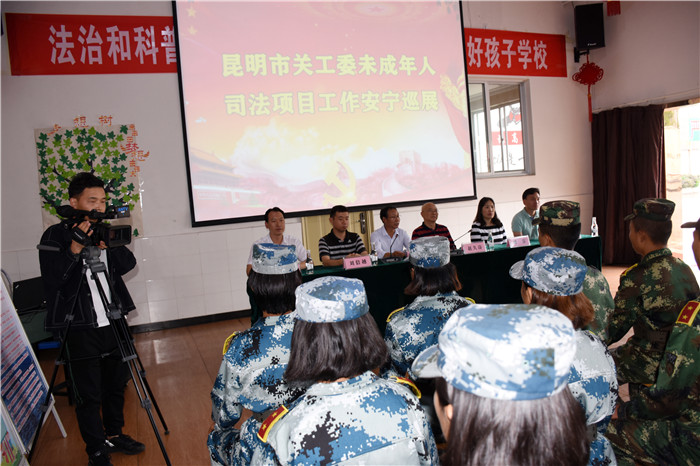 2019年8月27日下午,昆明市關工委未成年人司法項目工作安寧巡展和科普教育活動走進我校校園。昆明市關工委未司辦主任趙久詩、安寧市關工委專職副主任李庭貴、市科技局局長劉芬、共青團安寧市委書記劉倍越、市科協主席王星云等領導一行20余人出席了本次活動。