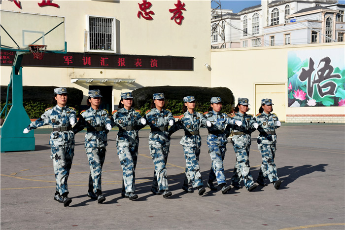 基本隊(duì)列動(dòng)作表演結(jié)束后,各方隊(duì)在教官的指揮下進(jìn)行了擒敵拳、應(yīng)急棍、手語操、女兵操等表演。同學(xué)們整齊的隊(duì)伍、精準(zhǔn)的動(dòng)作、昂揚(yáng)的士氣、嘹亮的軍歌、優(yōu)美的旋律、燃燒的激情贏得了陣陣掌聲。