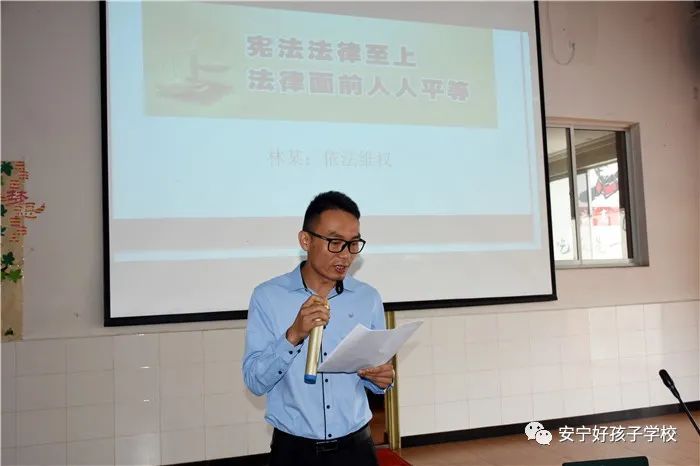 活動開始,我校執行校長尹斌做了開場致辭,熱烈歡迎領導們的到來并由衷感謝各位領導對學校的關心支持,也對同學們提出了要學法、知法、用法、守法的殷切希望。