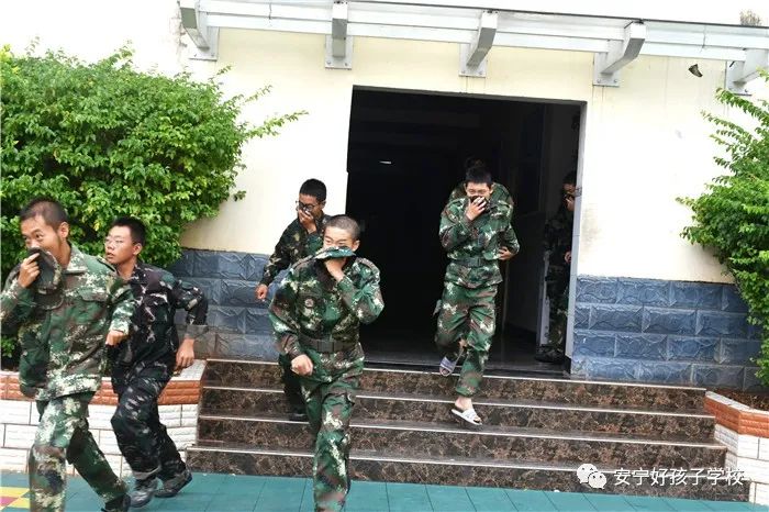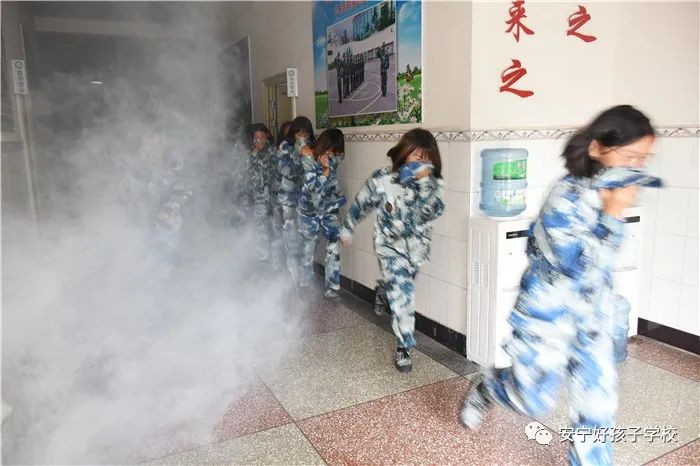 在急促的警報聲中,學校全體師生開始了消防疏散演習。班主任老師按各自的分工,以班級為單位,分區域、分方向、分樓層,按照規定路線指揮同學們向安全出口疏散。同學們用濕潤的毛巾、帽子或者雙手捂住口鼻,彎著腰井然有序的快速撤離到操場。全校80余人在47秒內全部集中到了操場中央,并進行了人數清點工作,保證全員安全撤離。