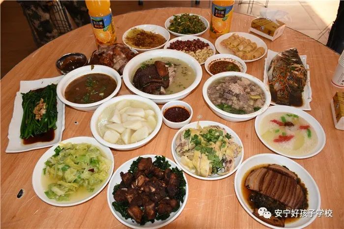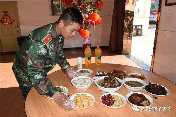 為了準備豐富的年夜飯,老師和同學們從上午就開始忙碌著,一起幫學校廚師們打下手。到了下午,一盤盤色香味俱全的菜肴就呈現在大家面前,伴隨著隆隆的鞭炮聲,年夜飯開始了。