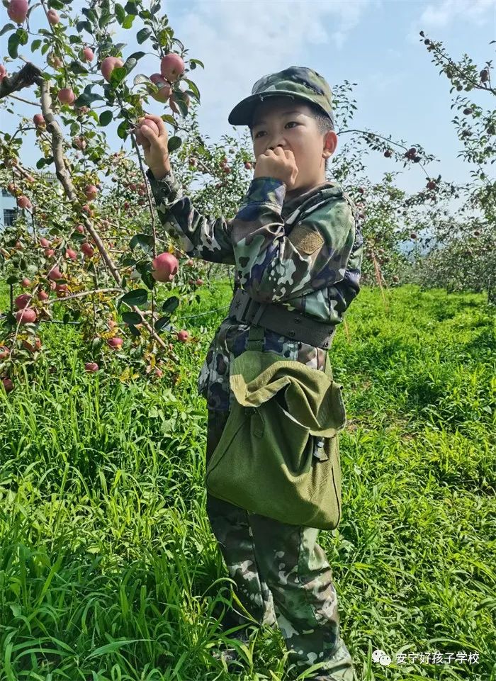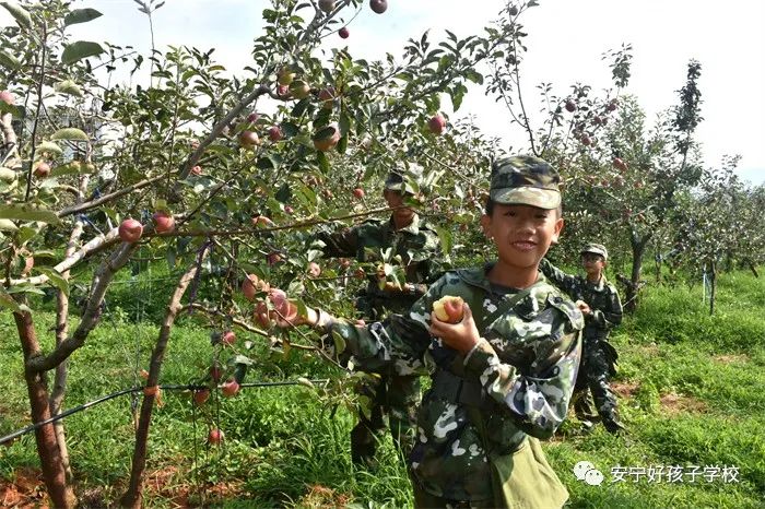 第一站,便來到了綠色而生態的有機蘋果基地,此基地的蘋果知名度很高,都是來自昭通大山里的優質品種。在蘋果成熟的季節,空氣中都彌漫著濃郁的果香,走在通往果園的小路上,孩子們顧不上欣賞美麗的田園風光,興奮地看著兩旁的果園里那又大又紅的蘋果,不禁唇齒生津。“同學們,看好再摘,看中哪個摘哪個,不能浪費”!在老師的一聲號令下,同學們分組有序地鉆進果園采摘起來。烈日當空,清甜脆爽的蘋果無疑是消暑佳品,同學們摘下自己喜歡的又大又紅的蘋果,便像“小饞貓”一樣大快朵頤起來。孩子們滿足地吃著鬧著,這一刻,他們似乎品嘗到的是辛勤勞動的快樂,較之蘋果本身的美味,這份滋味更值得孩子們在人生的每一階段細細品味。