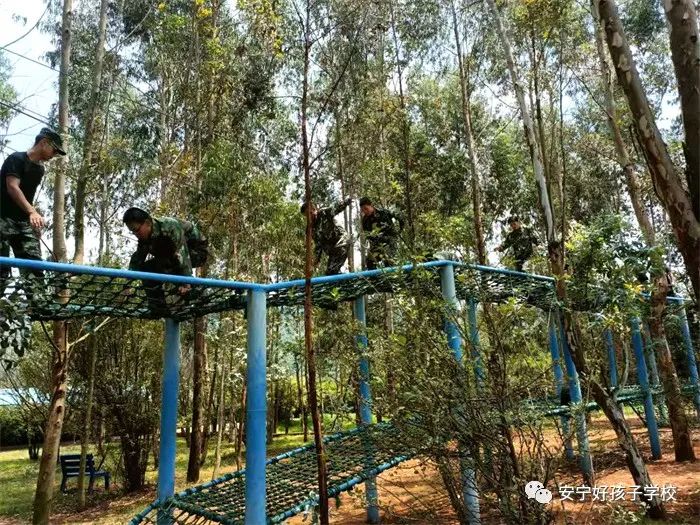 品嘗了特色美味佳肴后,稍作休整,大家便來到了項目多樣的戶外拓展基地,體驗了叢林穿越網繩、蹺蹺板、蕩秋千、蕩橋、攀巖、信任背摔等10余個項目。活動中,孩子們始終保持飽滿的熱情、高昂的斗志,積極參與,用心體會,努力完成著每一個項目。雖然在挑戰過程中,有的孩子有過膽怯、有過害怕,但在老師的幫助和隊友們響亮的加油打氣聲中,他們沒有退縮、沒有放棄,憑借著頑強的毅力,堅定的信念和團結協作的精神通過了重重難關考驗。