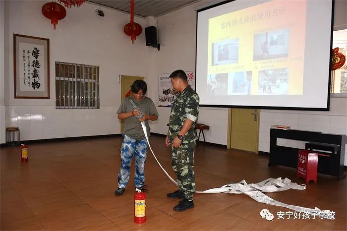 演練前,我校教務主任張汝云在多功能教室首先給大家開展了消防安全知識專題講座。講座中,張老師引用大量實際生活中的真實案例,為同學們講解了防火的重要性和嚴峻性,并對干粉滅火器和消防水槍的使用方法進行了詳細講解和演示,還讓同學們上臺親自體驗、操作。