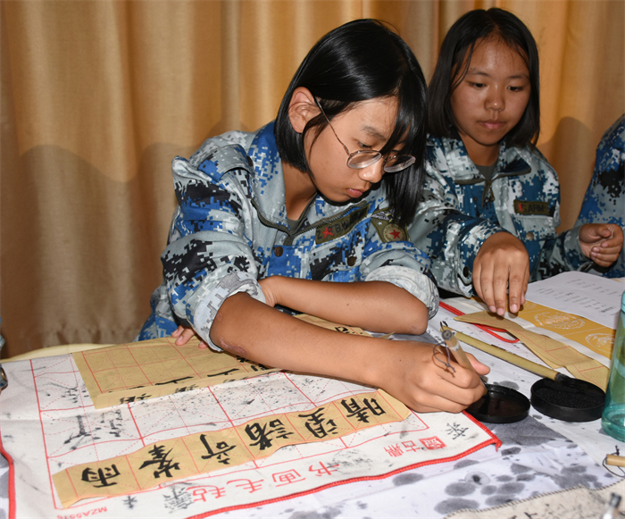 再來看看我們的硬筆書法,大家眼神專注,用心書寫,筆筆遒勁,有按有提;字字傳神,有柔有剛。一撇一捺誦祖國,一筆一畫描夢想。一個個漢字在同學們筆尖流淌,如串串音符譜成了美妙樂曲。無論是規(guī)整的小楷,還是婉麗的隸書,或渾圓淳和、或瀟灑寫意,書寫間盡顯漢字風流,字里行間都飽含對祖國母親的熱愛和贊美之情。