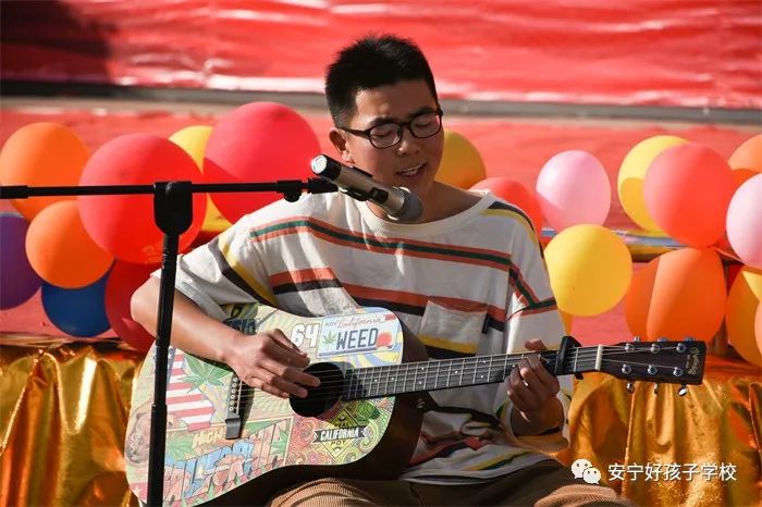 二班、四班男女生共表演極具民族特色的彝族舞蹈《五彩彝裳》一出場就吸引了大家的眼球,一群彝族阿哥阿妹熱情似火地翩翩起舞,他們舞出了彝族人民的淳樸好客,更舞出了對美好生活的無限向往。十班男生吉他彈唱《水星記》,在動人的旋律中,我們既看到了孩子扎實的演奏技巧,也更直接、生動地感受到了歌曲的意境和吉他演奏的藝術魅力。