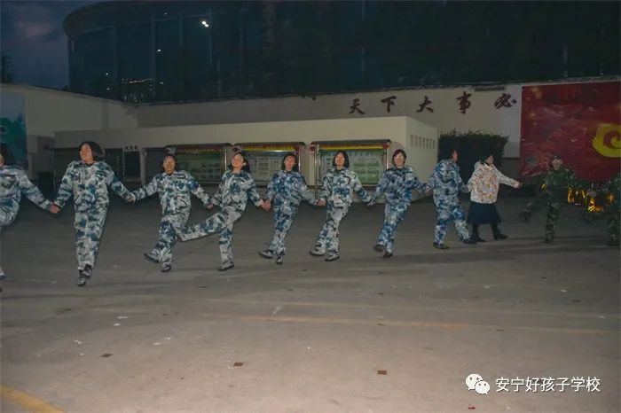 晚餐結束后,大家期待已久的篝火晚會在夜色中正式拉開帷幕。在極具民族特色的“納西三部曲”、“彝族左腳舞”、“兔子舞”等音樂聲中,師生們手拉手、手搭肩,一起圍著熊熊燃燒的篝火歡快地唱著、跳著,載歌載舞。雖然天氣寒冷,但也擋不住同學們高漲的熱情。篝火映紅了夜空,也映紅了孩子們的笑臉。