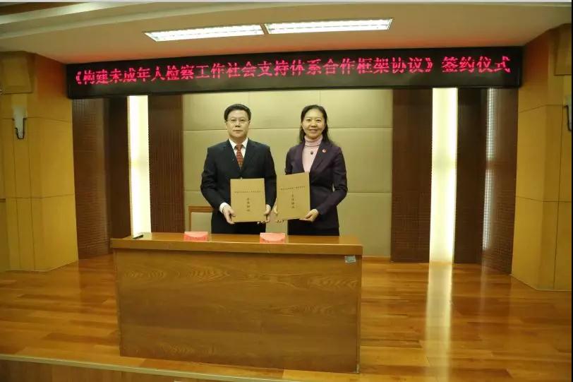 會上,最高人民檢察院、共青團中央簽署了《關于構建未成年人檢察工作社會支持體系合作框架協議》;中央綜治辦、中央網信辦、最高人民法院、教育部、民政部、全國婦聯和江蘇省綜治委“預青”專項組、廣西柳州市委政法委負責同志作了交流發言。