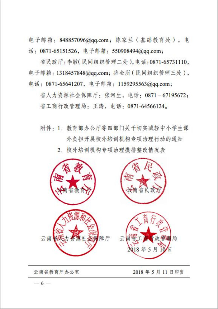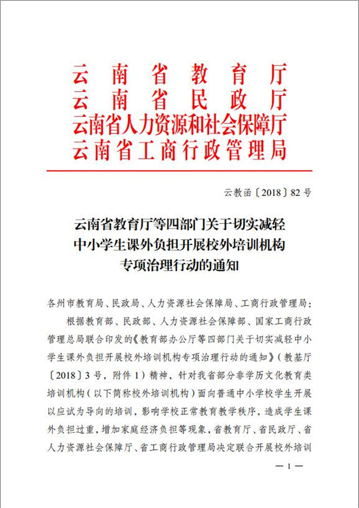 云南省教育廳等四部門關(guān)于切實減輕中小學生課外負擔開展校外培訓機構(gòu)專項治理行動的通知