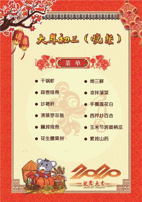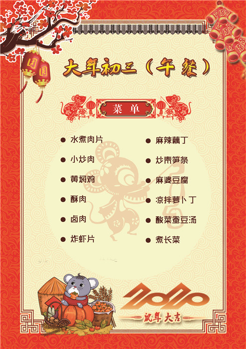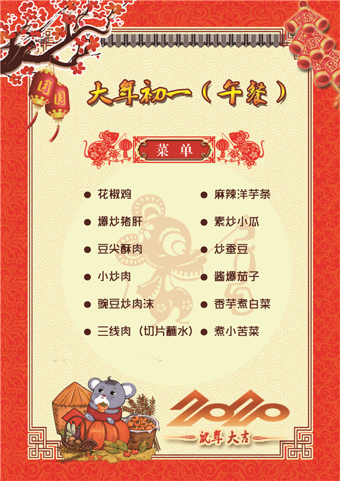 過年了 !孩子們吃什么?這是學校領(lǐng)導幾天來一直思考的問題。經(jīng)過與學校營養(yǎng)師、食堂廚師們多次商議后,本著營養(yǎng)、健康、不浪費,又要保證孩子每餐都能吃上新鮮可口的飯菜,終于議定了菜單,現(xiàn)予以公布。祝孩子們新年快樂!祝全體家長萬事如意!