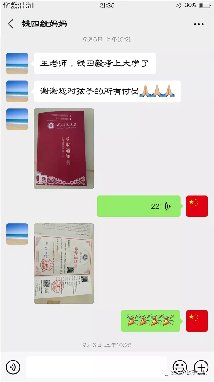 的確,經過好孩子學校10個月的學習,曾經少不更事的錢四毅陽光了、自信了、長大了、懂事了!不但懂得了父母的艱辛與無私的愛,還回歸學校繼續就讀,憑借超乎常人的堅韌和頑強,深夜挑燈,寒窗苦讀,查缺補漏,迅速追趕,最終考上自己理想的大學。
