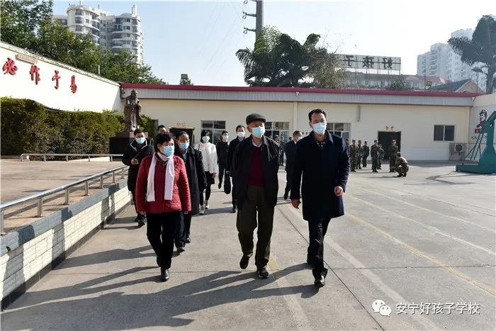 2021年1月21日上午,昆明市人大常委會原主任、市關工委主任李莊,昆明市政協原副主席、市關工委常務副主任汪葉菊,辦公室主任牛晶珊等,在安寧市人民政府副總督學王永麗,安寧團市委書記邵鵬、安寧市關工委專職副主任李庭貴、市委辦副主任李焰、團市委副書記徐濟炳等陪同下蒞臨我校調研指導工作。