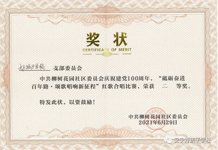 為隆重慶祝中國共產(chǎn)黨百年華誕,2021年6月29日上午,我校參加由中共柳樹花園社區(qū)委員會、居民委員會主辦的慶祝建黨100周年系列活動之“砥礪奮進百年路 頌歌唱響新征程”合唱比賽活動,以一首《唱支山歌給黨聽》喜獲二等獎。