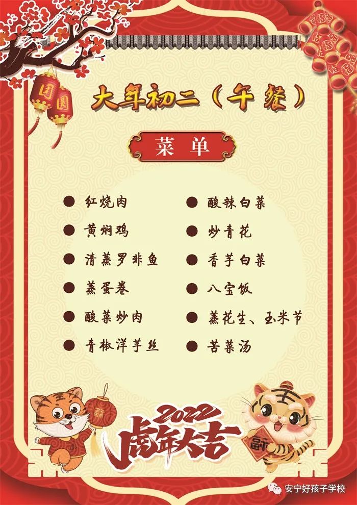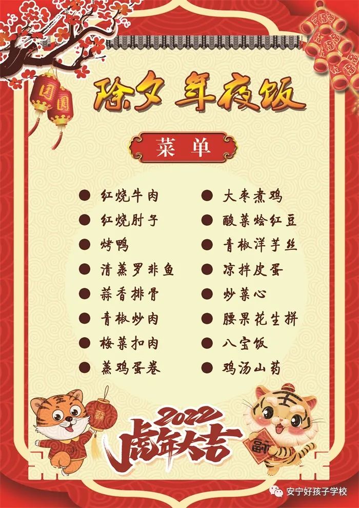 過年了 !孩子們吃什么?這是學(xué)校領(lǐng)導(dǎo)幾天來一直思考的問題。經(jīng)過與學(xué)校營養(yǎng)師、食堂廚師們多次商議后,本著營養(yǎng)、健康、不浪費,又要保證孩子每餐都能吃上新鮮可口的飯菜,終于議定了菜單,現(xiàn)予以公布。祝孩子們新年快樂!祝全體家長萬事如意!