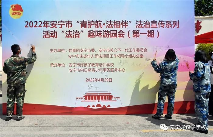 今年,我們黨將召開第二十次全國代表大會,這是在進入全面建設社會主義現代化國家、向第二個百年奮斗目標進軍新征程的重要時刻召開的一次十分重要的大會,是黨和國家政治生活中的一件大事。在這個具有深遠意義的歷史節點上,為加強青少年法治教育和思想道德教育,預防和減少未成年人違法犯罪,推進依法治市,建設平安安寧,2022年4月29日,由共青團安寧市委、市關工委、市未司辦主辦,安寧市向日葵青少年事務服務中心與我校承辦的2022年安寧市“青護航·法相伴”法治宣傳系列活動在我校舉行。