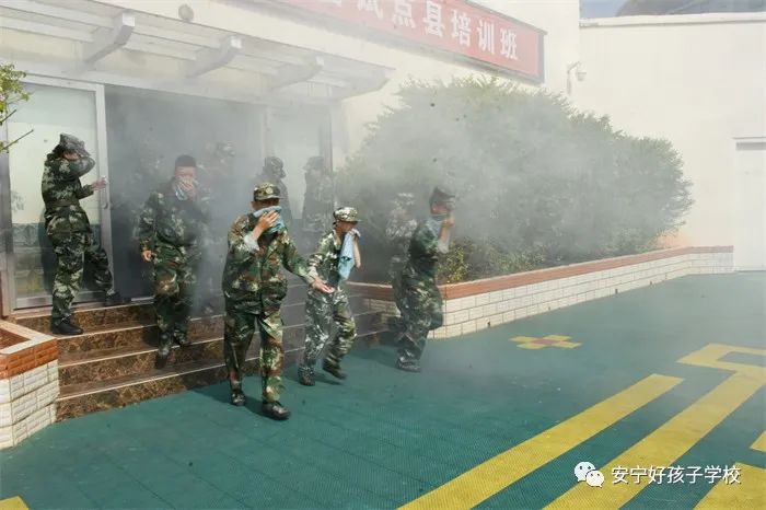 活動伊始,首先進行了消防應急演練。隨著一聲急促的警報聲響起,在老師的指引下,同學們便彎著腰、捂住口鼻,安全、快速、有序地從宿舍區的安全疏散通道逃離“火場”,撤離到安全地帶,隨后各班清點人數并向上匯報。接著消防指戰員到場,迅速展開戰斗,打開消防水帶對“火勢”進行壓制撲救。