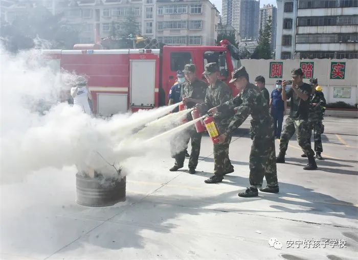 演練結束后,消防指戰員趁熱打鐵,在操場上詳細講解了火災的危害和預防火災的常識、火場逃生的自救技巧、初期火災的撲救及注意事項等,同時還演示了消防水帶、滅火器的使用方法,并模擬“火災現場”安排大家上前體驗撲救。同學們紛紛踴躍上場,積極參與到滅火的實操演練中,在寓教于樂中提高了安全自救意識。